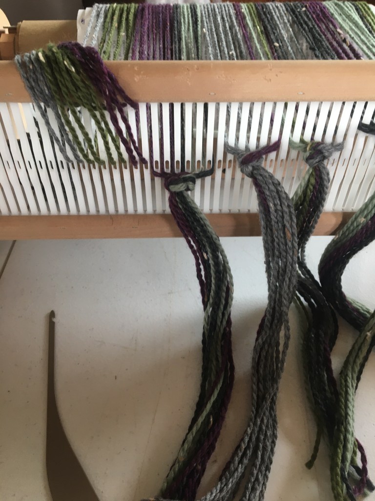I learned that many color changes may not be best. At the start I was cutting my yarns after each color change, weaving in the ends as I went. As you might imagine, it started getting a bit crowded. I eventually started skipping the short sections up the selvedge where I could so I didn’t have so many cuts and ends to tuck. I had quite a few color sections of two and even a one strand section. In future projects, I think minimizing the small sections would be best just for efficiency sake.